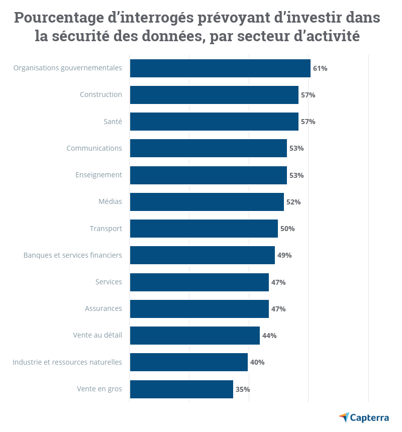 La prévalence dans certains marchés vaut la peine d’être soulignée : d’après notre enquête, dans tous les secteurs sauf un, plus de 40 % des entreprises prévoient d’investir dans la sécurisation des données (voir Figure 6).