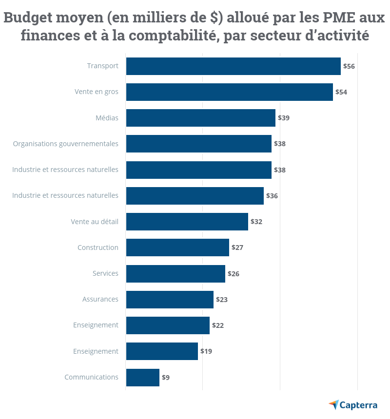 - Les autres entreprises devraient prévoir d’allouer 10 000 à 30 000 dollars à un logiciel de finances et de comptabilité pour rester au niveau de leurs concurrentes.